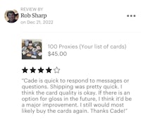 For full transparency, you can find negative reviews on my Etsy store. Most negative reviews are from people who were unaware that the cards are non-glossy and single-sided, as stated in every item description.